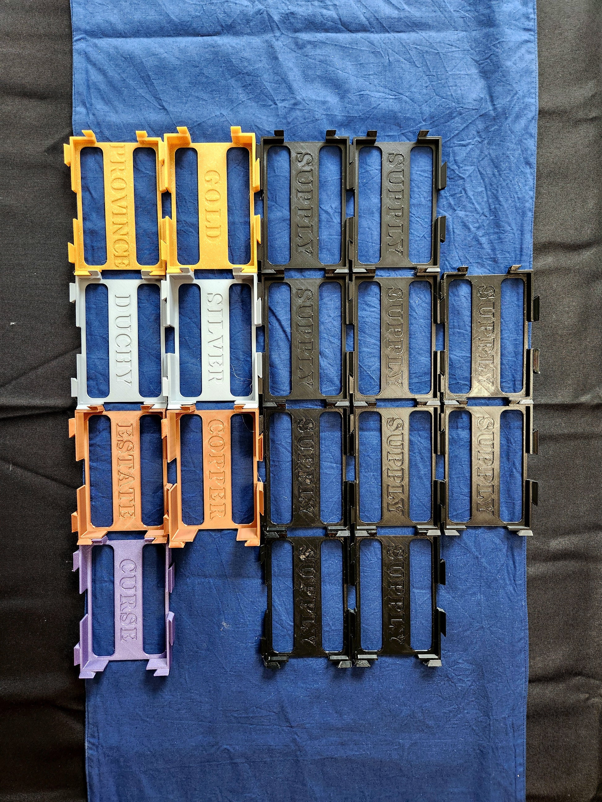Level up your Dominion game night with this premium set of 3D printed card organizers—custom-built for fans who take their tabletop setup seriously! Designed specifically for the Dominion Base Set & Expansions, these vibrant, interlocking trays bring order to your table and speed to your setup, so you can jump straight into strategy and competition.